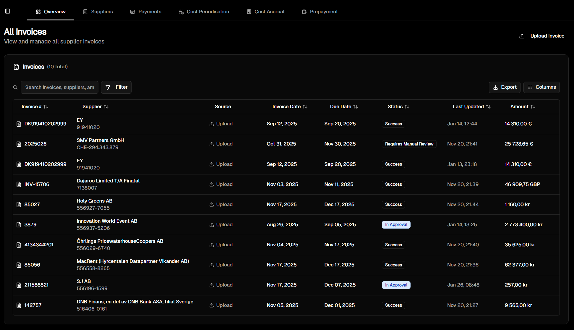 We're building the AI-native accounting platform for the Nordics. Accounts Payable is our first module — and it's already the best in class.